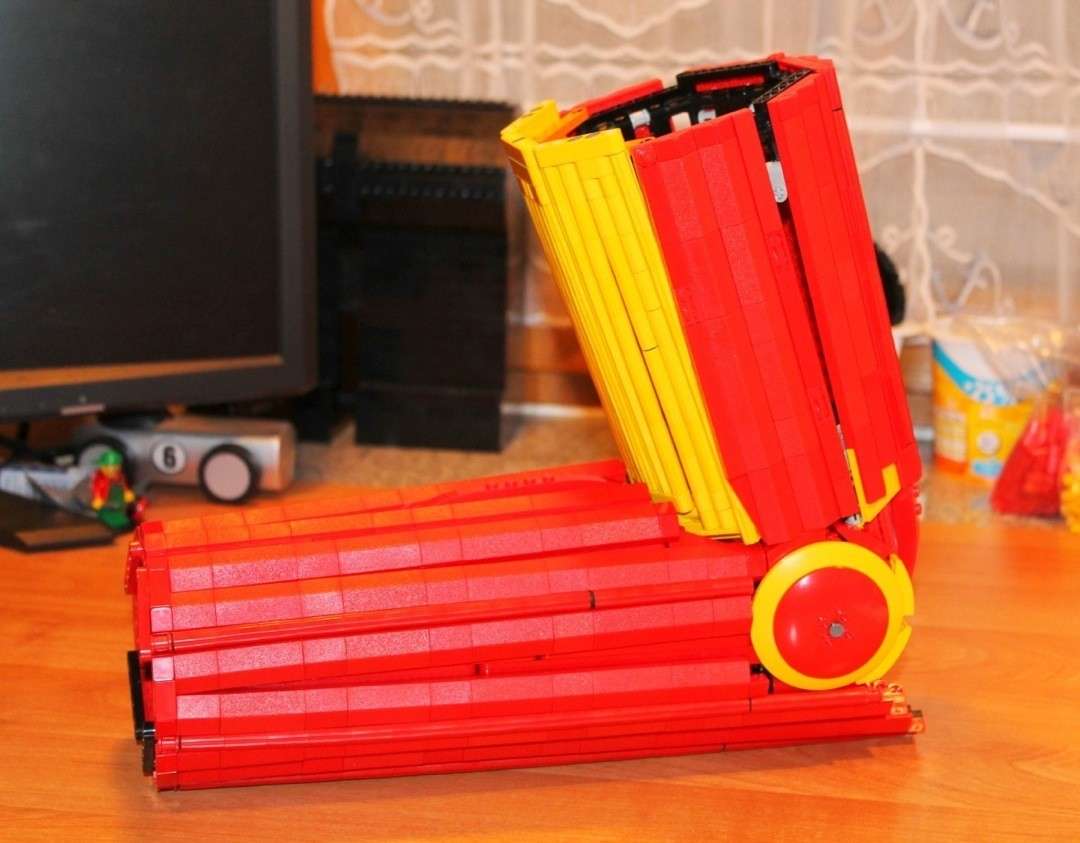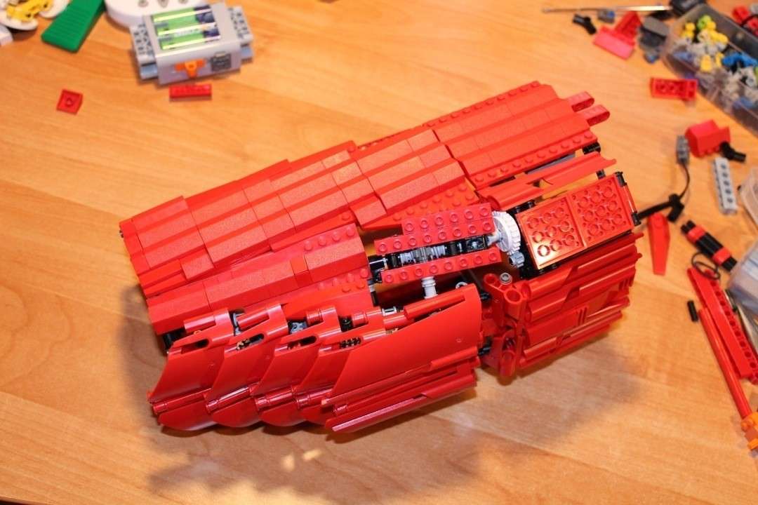 Es war dabei für mich von Anfang an vorhersehbar, dass ich das Projekt niemals komplett beenden würde. Aber das war auch nicht mein Hauptziel - ich wollte es einfach probiert haben. Und immerhin ein kompletter Arm und ein halbkomplettes Bein sind die Erfolge. Der Arm hat einen überraschend hohen Tragekomfort (dafür, dass er aus Lego ist). Die Flügelteile am Unterschenkelschutz können außerdem über zwei Motoren gehoben und gesenkt werden.