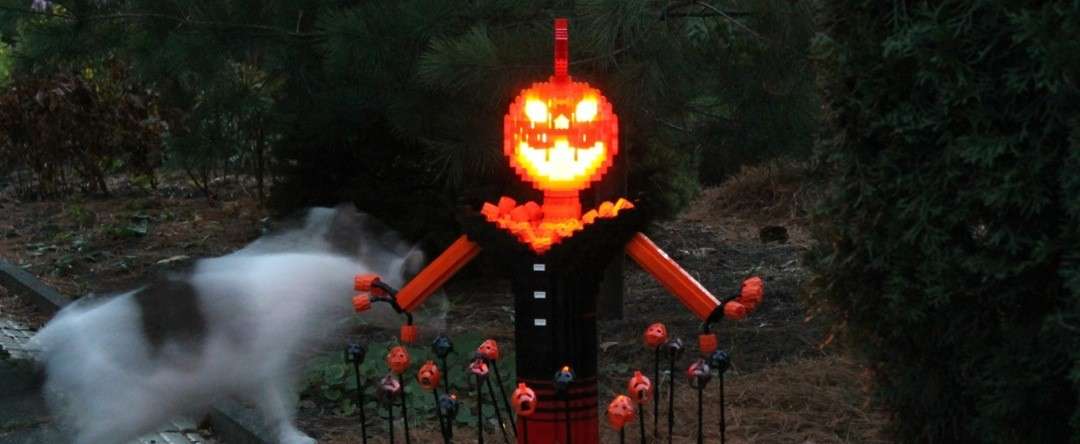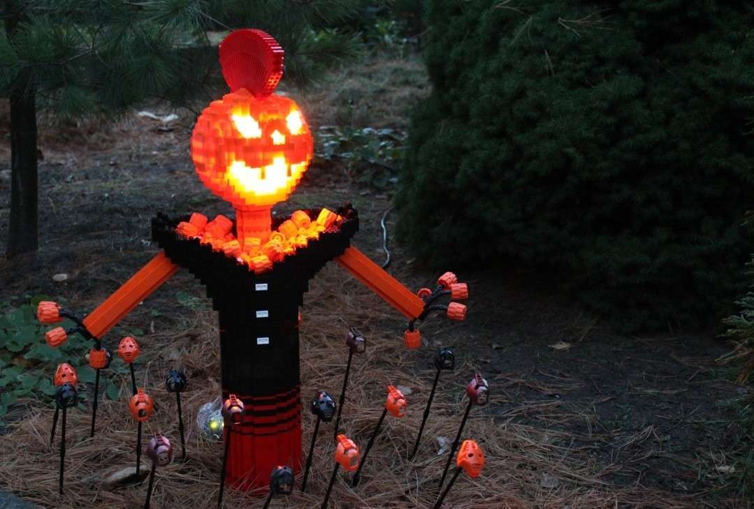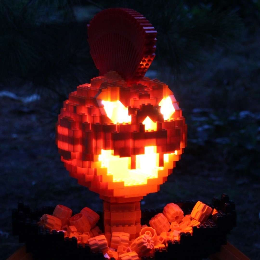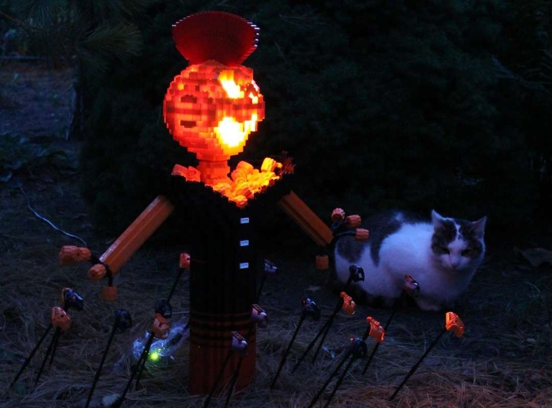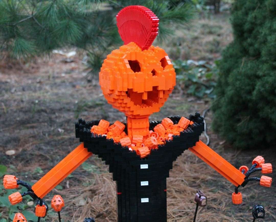Natürlich war es schon lange mal wieder Zeit für eine neue Legoskulptur. Entsprechend habe ich Halloween als Anlass genommen, mich erneut kreativ zu betätigen. Diese verrückte Figur sollte ursprünglich ein kleiner Kürbis mit einem Gespenst daneben werden. Aber dann hat mir der Kürbis so gut gefallen, dass ich noch einen Körper dazu gebaut habe.