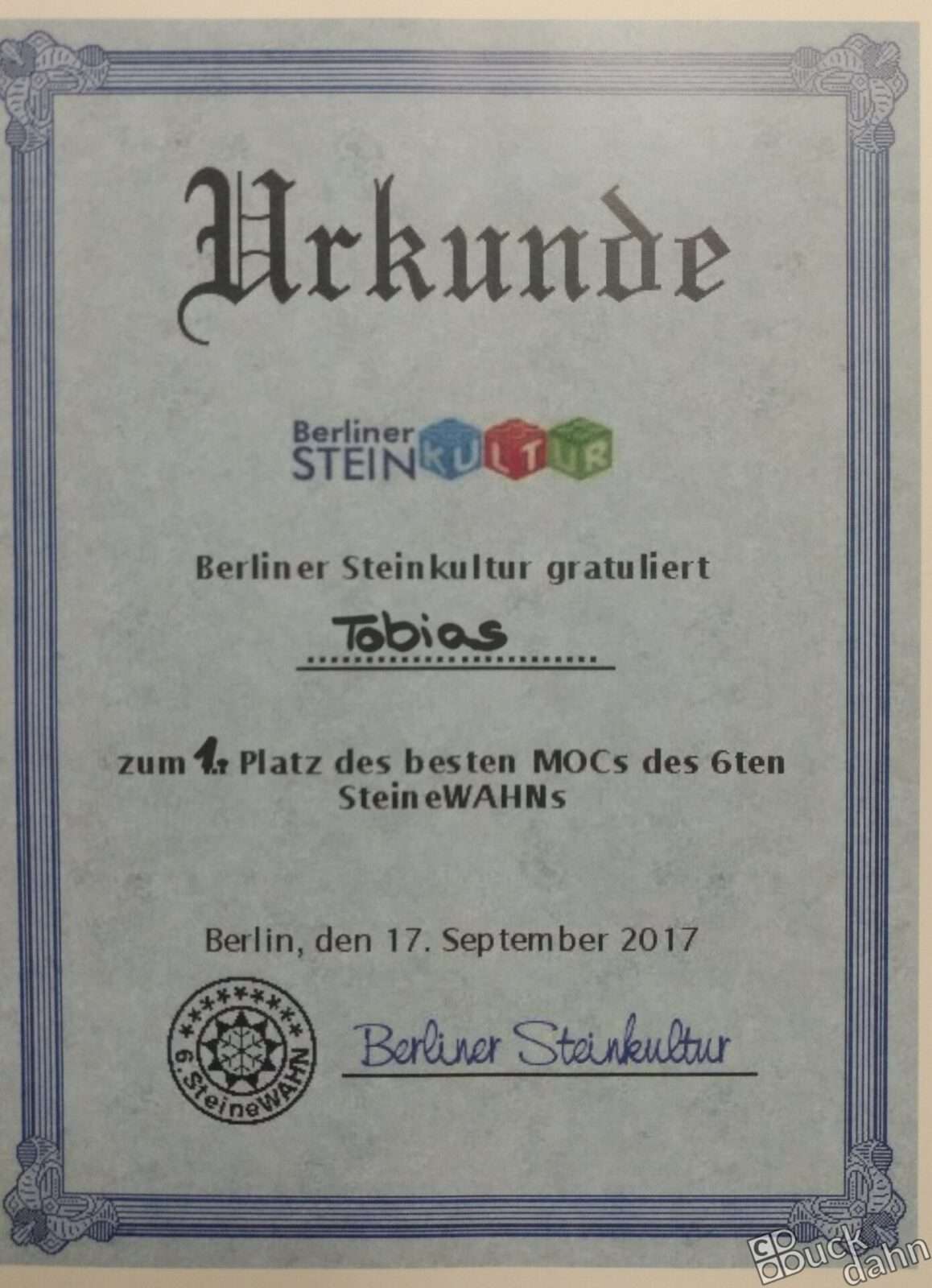 Und so ging im April 2017 der Bau dieser Skulptur zu Ende. Im September konnte ich sie schließlich beim 6. Berliner SteineWAHN!↗ zum ersten Mal der Öffentlichkeit präsentieren. Zu meiner großen Freude wurde der Storch von den Ausstellern zum besten MOC gewählt! Damit hätte ich nie gerechnet - eine traumhafte Krönung für dieses spannende Kapitel meiner Legoleidenschaft.